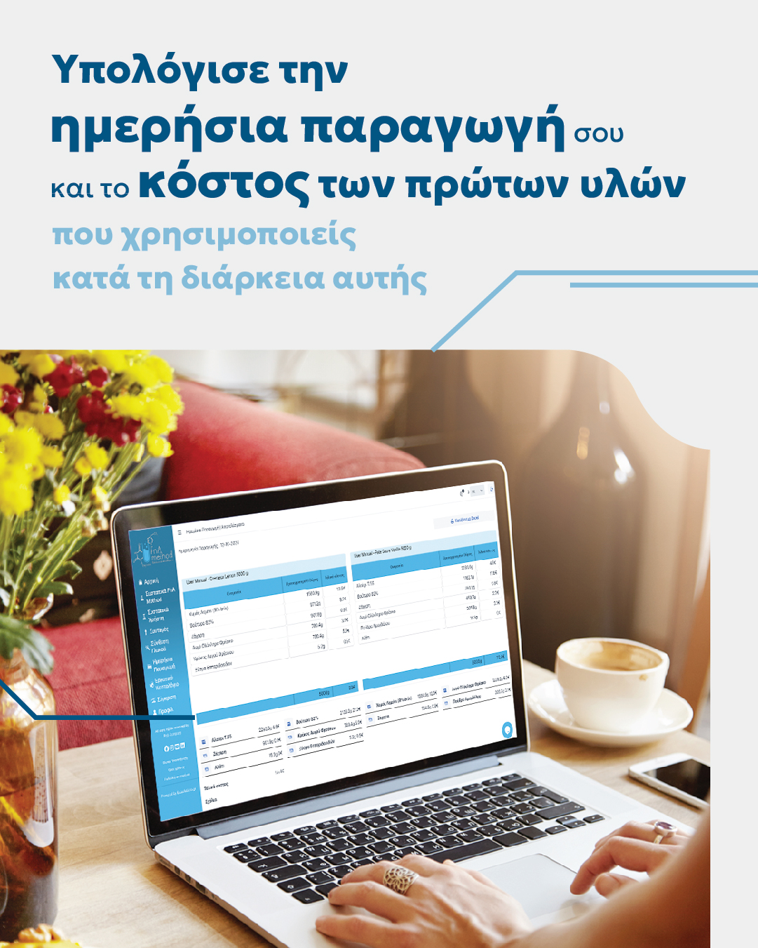- Να υπολογίζετε τα κοστολόγια των συνταγών, τα εργατικά κοστολόγια και τα πάγια έξοδα της επιχείρησης