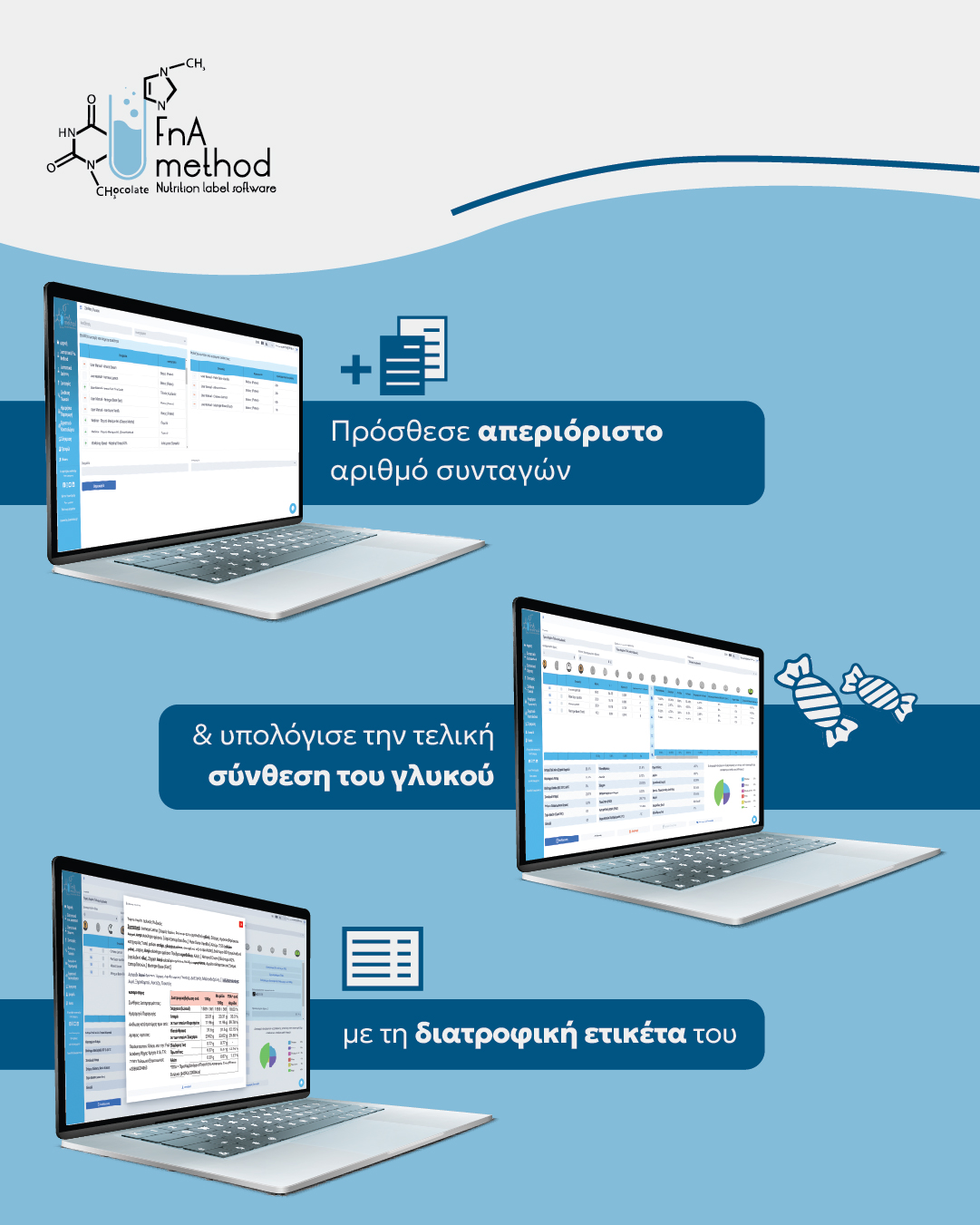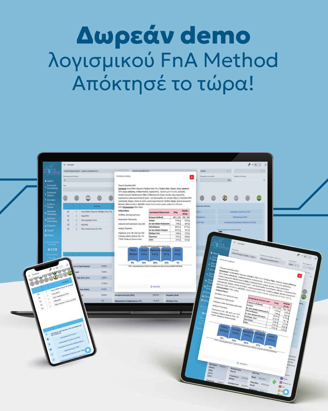 - Να δημιουργείτε εύκολα και γρήγορα τις δικές σας διατροφικές ετικέτες, σε πλήρη συμμόρφωση με τη νομοθεσία